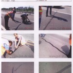 一种用于沥青道路表面的快速修补裂缝的特殊路用材料,该材料能够有效持久的阻止对路面已有的裂缝渗水,防止裂缝进一步扩大,不需要开槽和清理裂缝,只要把裂缝贴直接粘贴在裂缝处就可以开放交通。该产品由高分子聚合物等材料方合成,日本进口材料和配方,粘结力强,耐磨,使用寿命长。